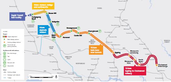 First, the impacts on the current network. The most obvious is the conversion of the existing line between Epping and Chatswood – the ECRL, which only opened in 2009 – to become part of the new metro line (see the NWRL website here and a more detailed overview here). The first effect will be the closure of the line for seven months in 2018 to install new signalling systems, power upgrades, platform screen doors and other infrastructure as part of the conversion process. Temporary bus routes will be established during this period, but the duration of this closure is going to make for interesting debates prior to the 2019 poll, even if the new line is open by then.