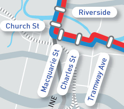 - While there is a strong case for adopting this corridor, it is obviously not the most direct route between the Parramatta CBD and Westmead. While there are major design and heritage constraints involved, one option worth considering might be to continue the line over the railway on Hawkesbury Road at Westmead and then loop it back to the Parramatta CBD via Alexandra Avenue, Park Parade, Argyle Street and Marsden Street, reconnecting with the planned line at Macquarie Street.
