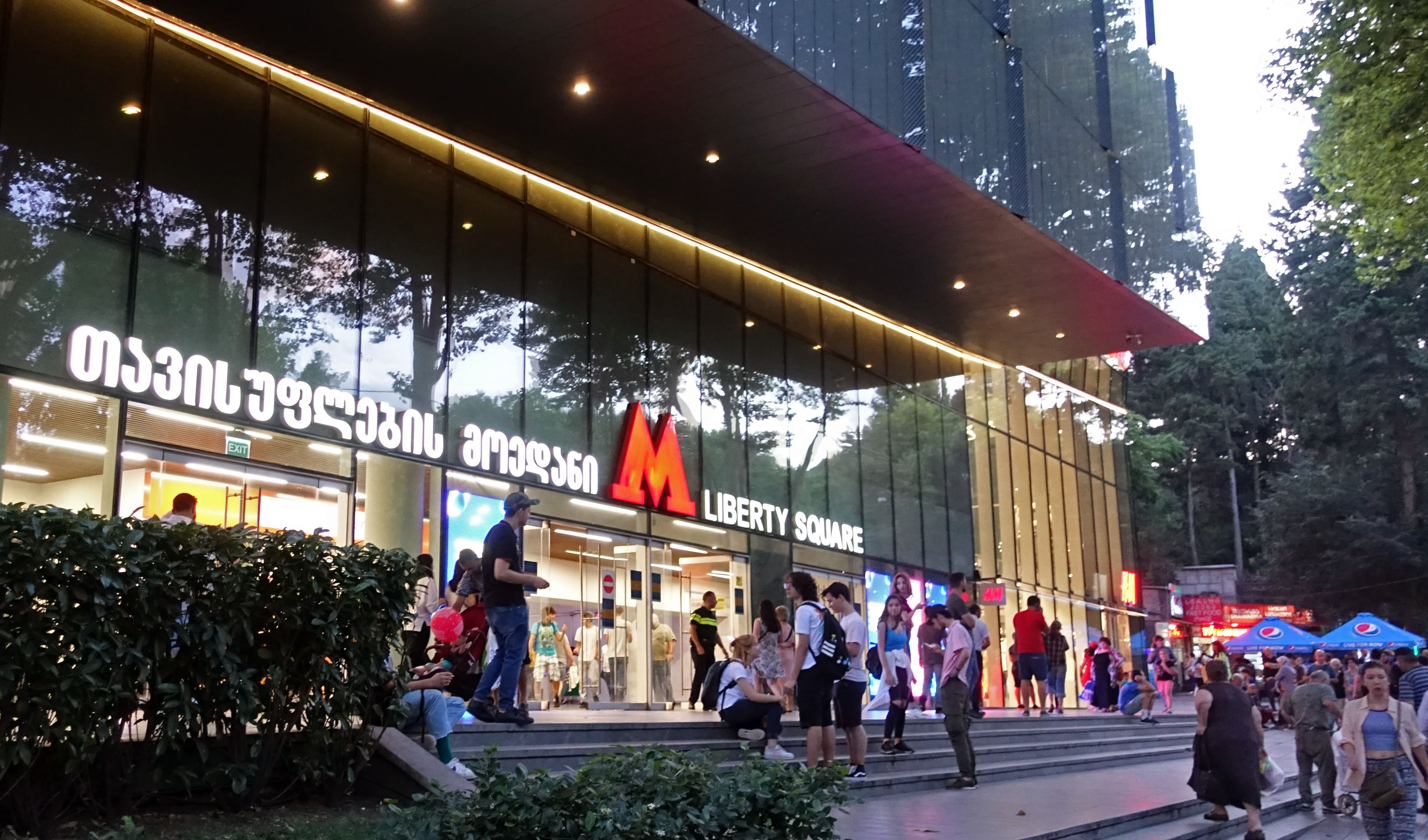Arriving at your destination is a reverse of boarding. After standing for the long ride up the escalator (and you never see people walking up) you exit the station which is turnstile free (except for some reason at Didube station), an obvious benefit of a flat-fare system. Many of the stations are located next to retail malls, or a linked to nearby streets by pedestrian subways lined with small shops.
