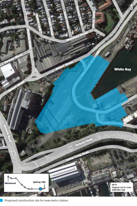 The Bays Precinct: The station will be located between Glebe Island and White Bay Power Station with an entrance to the south of White Bay, providing direct access to the proposed future Bays Waterfront Promenade, which would run north to south along White Bay. The entrance will be to the south of White Bay, near the proposed promenade. This means the station will not be particularly accessible for Balmain and Rozelle residents.